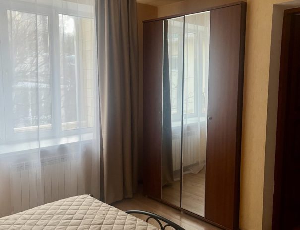 - Мебель: вешалка, зеркало, кровать двуспальная, кровать односпальная, прикроватные тумбочки, стол, стулья, шкаф