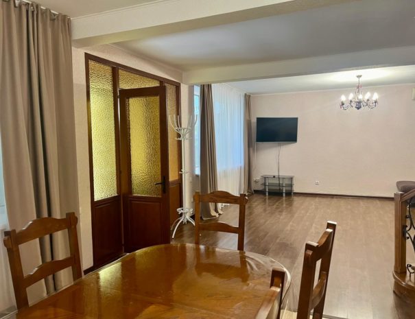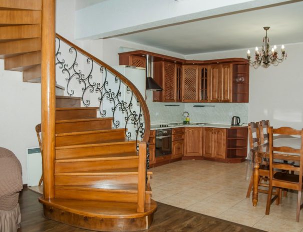 - Оборудование: гладильная доска, духовой шкаф, микроволновая печь, набор посуды, плита электрическая, сплит-система, телевизор, утюг, холодильник, электрочайник